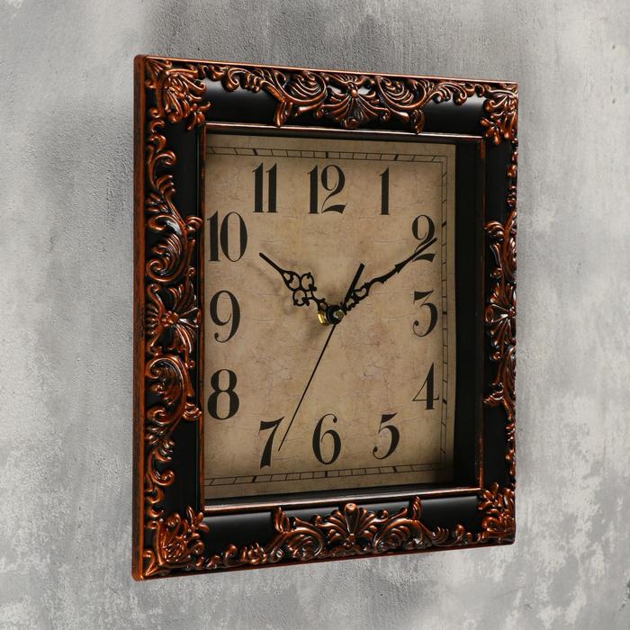 Часы настенные, квадратные, бронзовый узор, чёрные, 30х30 см