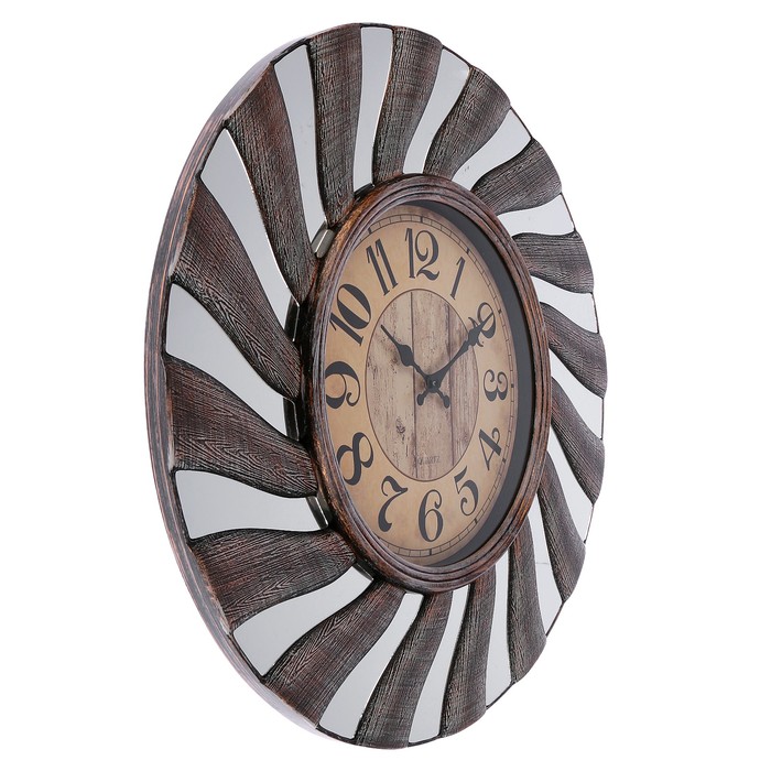 Часы настенные «Лучики Солнца», с зеркалом, рама по спирали, тёмно-коричневые, d=58 см