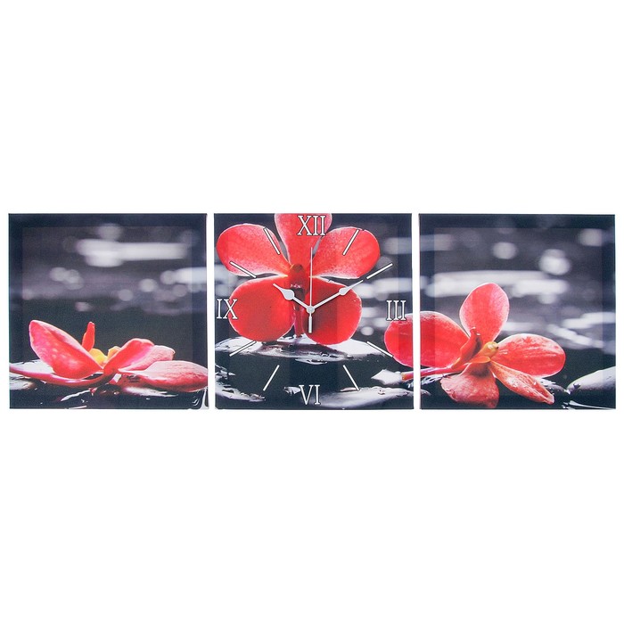 Каждому хозяину периодически приходит мысль обновить свою квартиру, сделать ремонт, перестановку или кардинально поменять внешний вид каждой комнаты. Часы настенные модульные «Орхидеи на камнях», 35 × 110 см — привлекательная деталь, которая поможет воплотить вашу интерьерную идею, создать неповторимую атмосферу в вашем доме. Окружите себя приятными мелочами, пусть они радуют глаз и дарят гармонию.