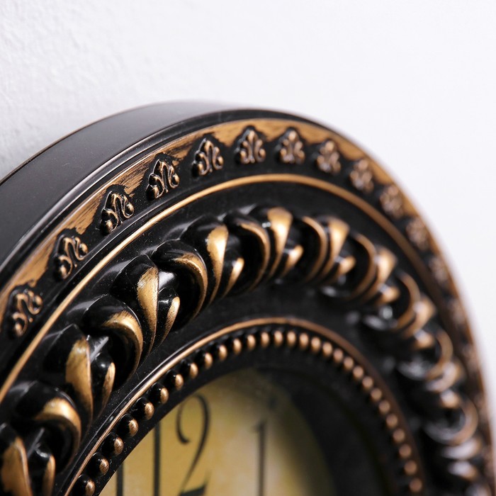 Часы настенные, плавный ход, рама два уровня с узором, циф-т утопает, чёрные, 30х30 см