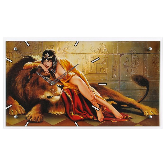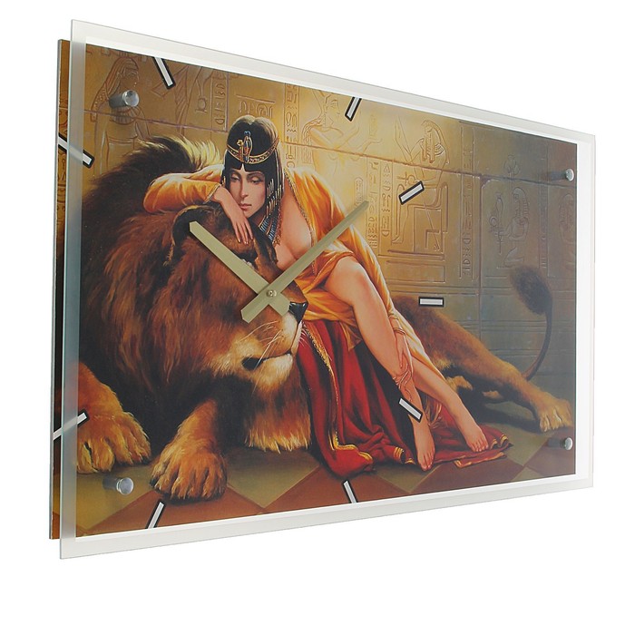 Часы настенные прямоугольные "Царица со львом", 35х60 см микс
