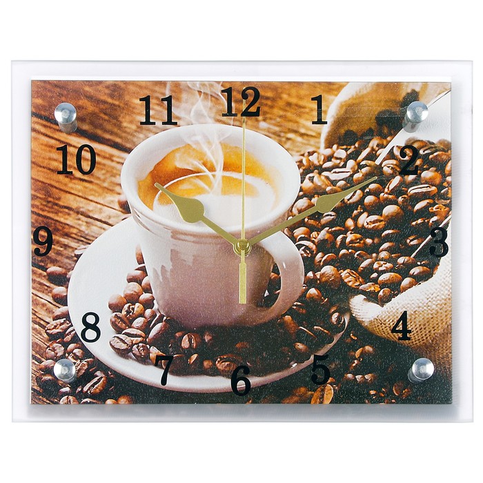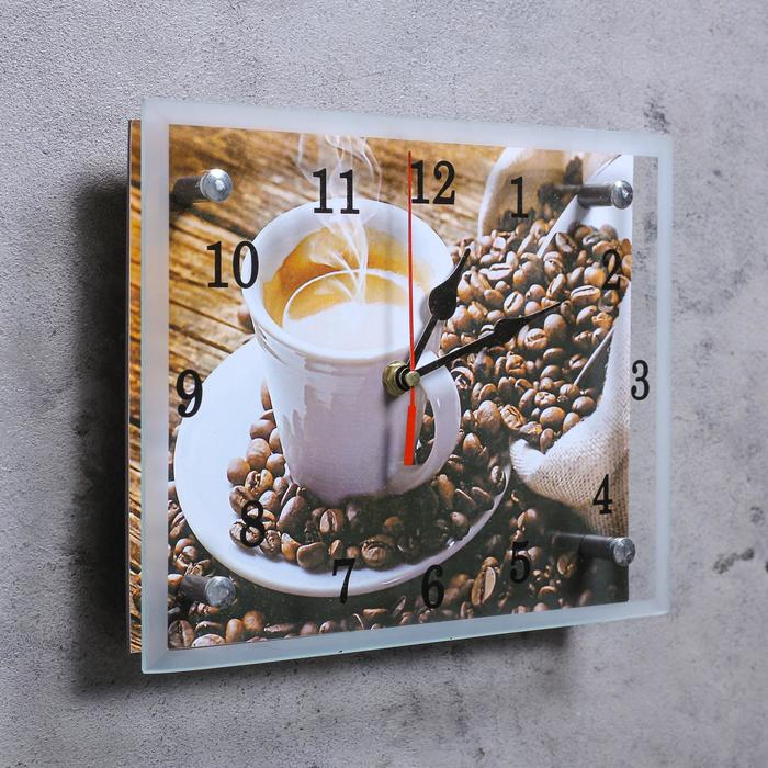 Часы настенные прямоугольные "Чашка кофе", 20х25 см микс