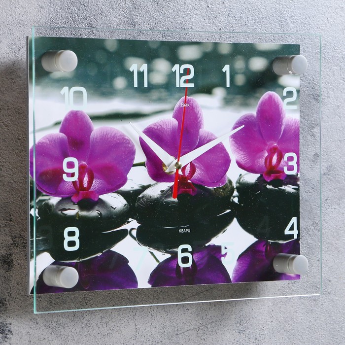 Часы настенные прямоугольные "Цветки на камнях", 20х26 см микс