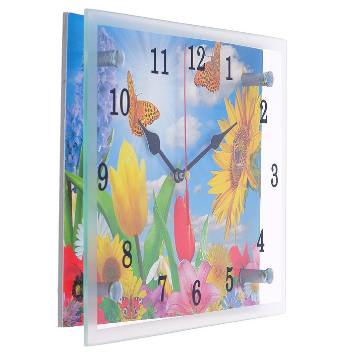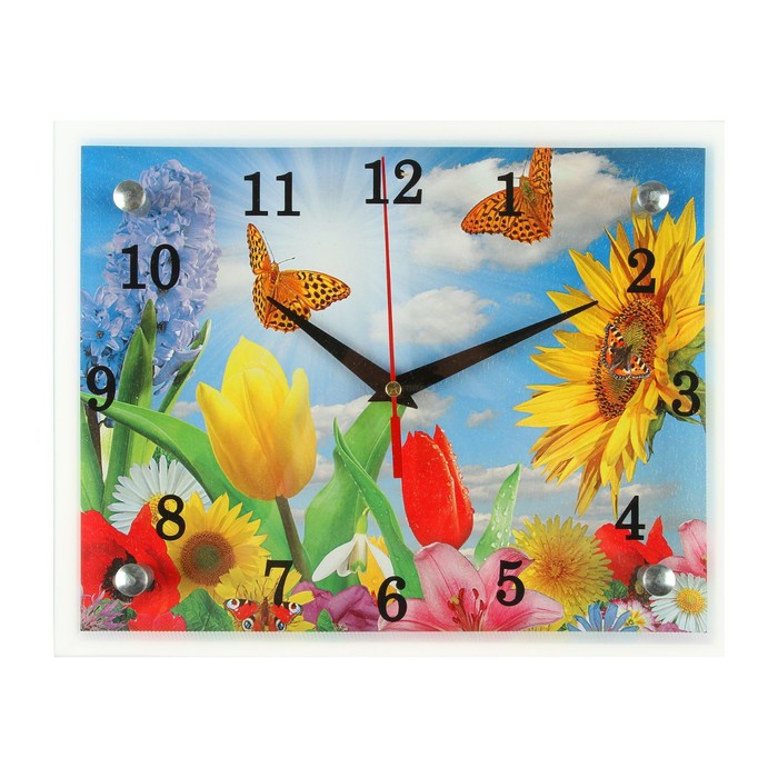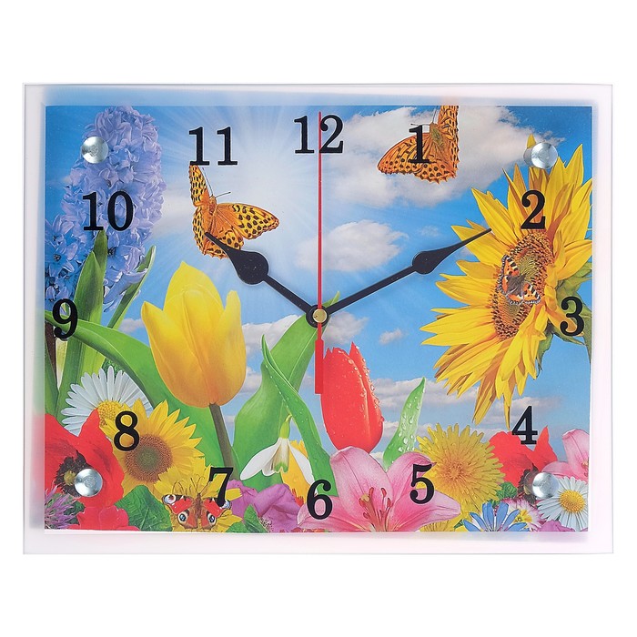 Часы настенные прямоугольные "Цветы и бабочки", 20х25 см микс