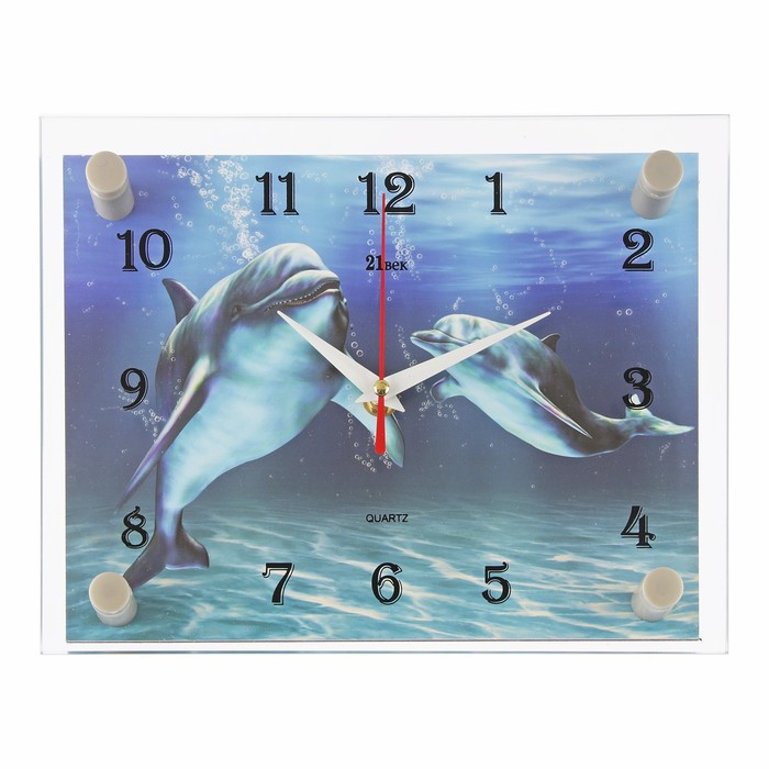 Часы настенные прямоугольные "Дельфины", 20х26 см микс