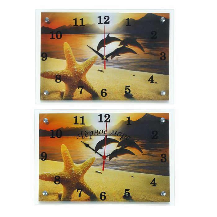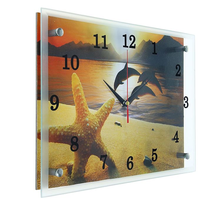 Часы настенные прямоугольные "Дельфины на закате", микс 25х35 см