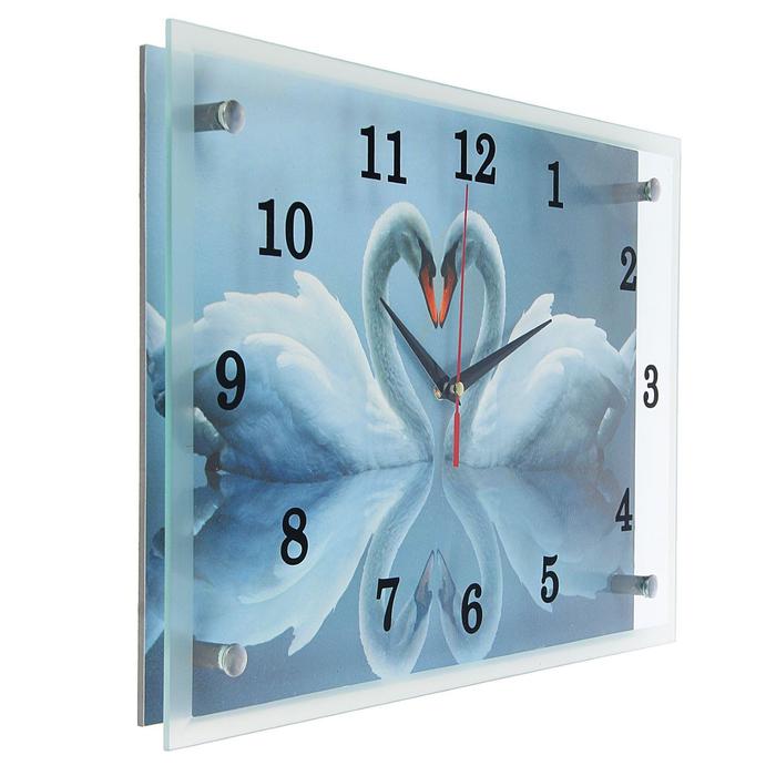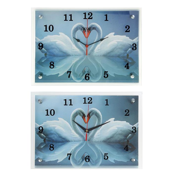 Часы настенные прямоугольные "Два белых лебедя", 25х35 см микс