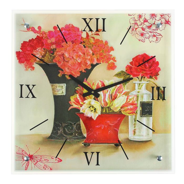Часы настенные прямоугольные "Композиция из цветов", 50х50 см микс