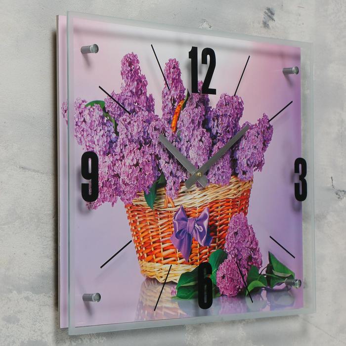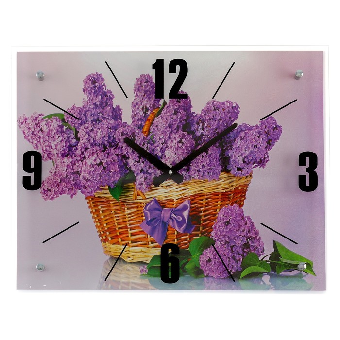 Часы настенные прямоугольные "Корзина сирени", 40х50 см микс