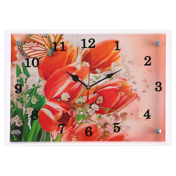 Часы настенные прямоугольные "Красные тюльпаны", 25х35 см микс