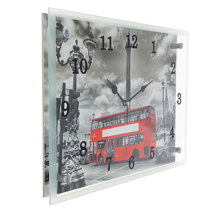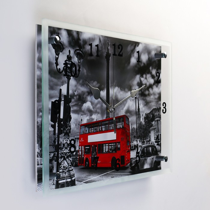 Часы настенные прямоугольные "Красный автобус", 25х35 см микс