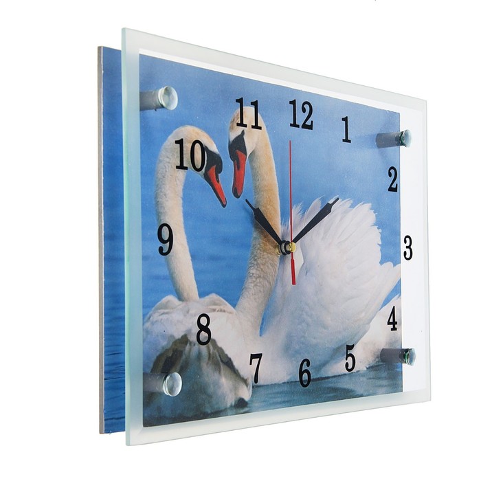 Часы настенные прямоугольные "Лебеди на пруду", 20х30 см микс