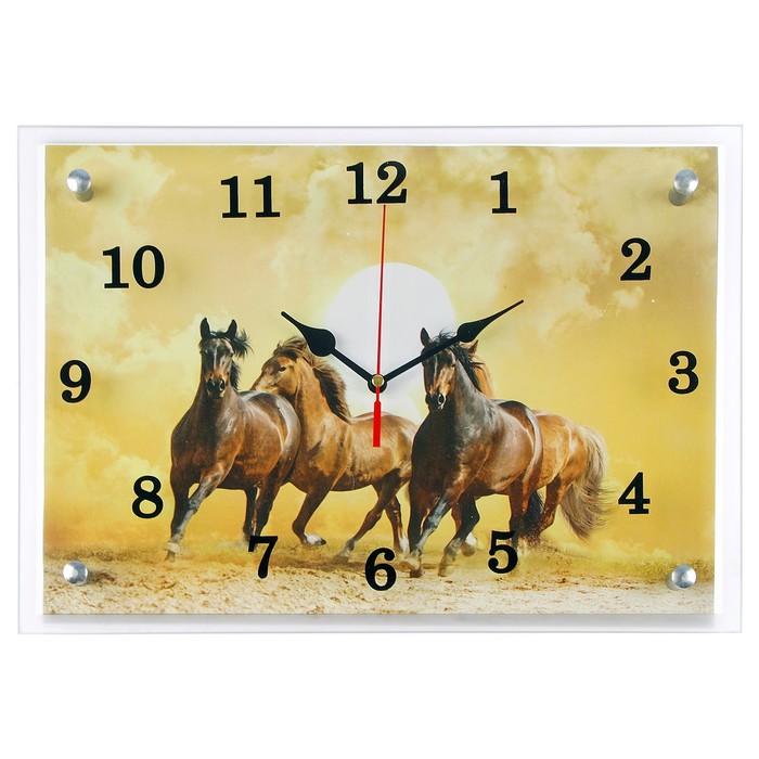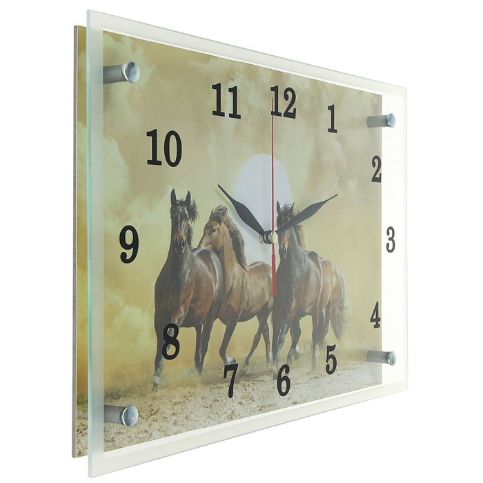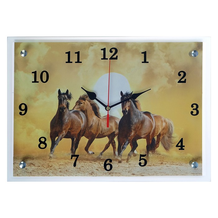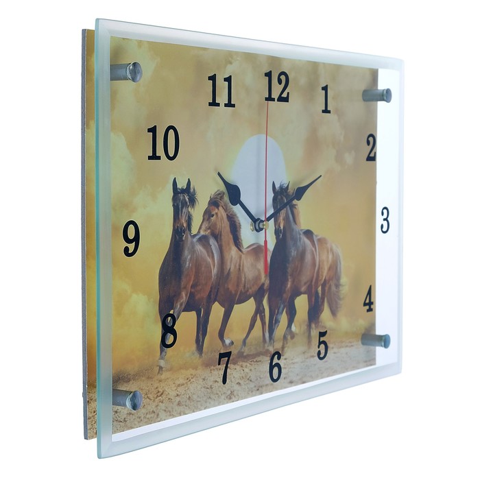 Часы настенные прямоугольные "Лошади в пустыне", 25х35 см микс