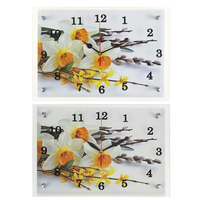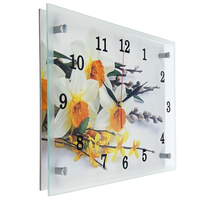 Часы настенные прямоугольные "Первые весенние цветы", 25х35 см микс