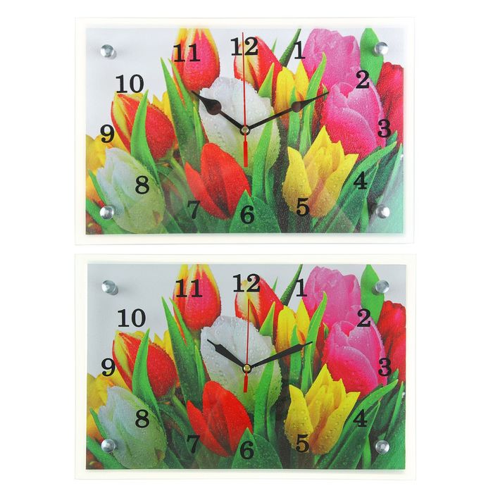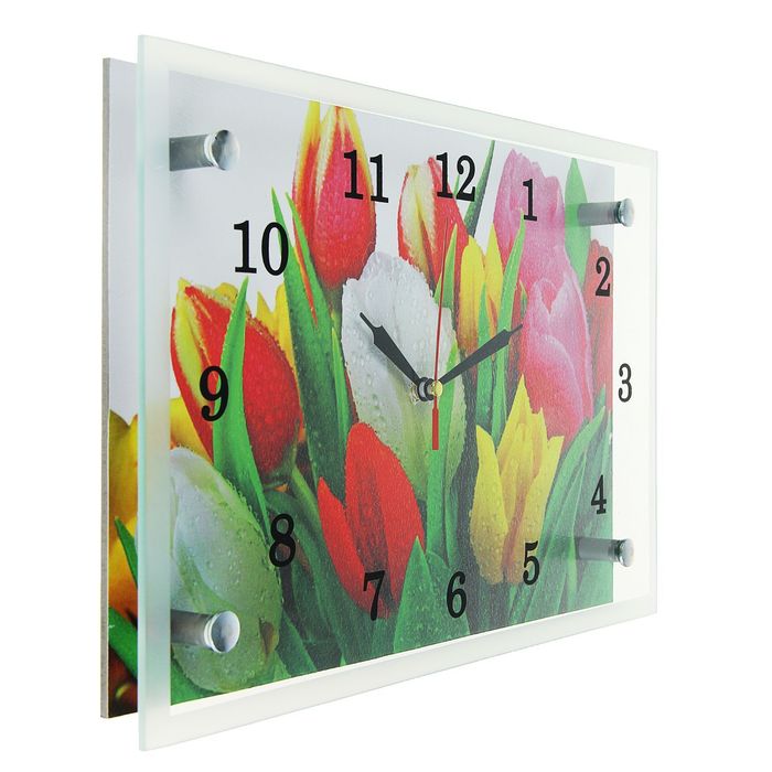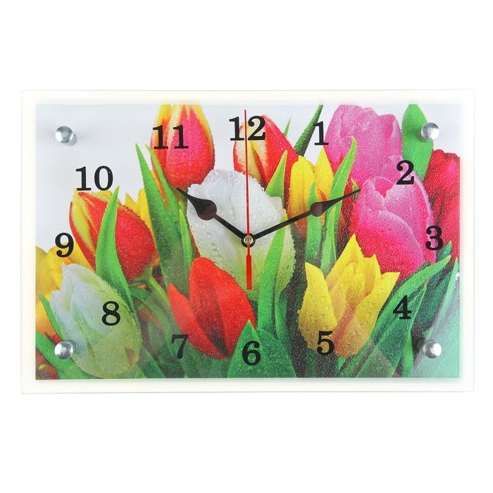 Часы настенные прямоугольные "Разноцветные тюльпаны", 20х30 см микс