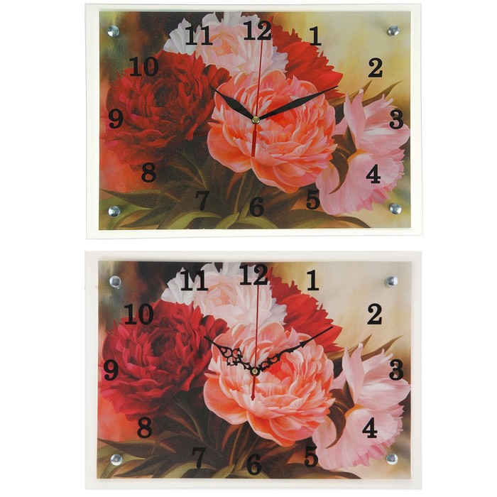 Часы настенные прямоугольные "Розовые цветы", 25х35 см микс