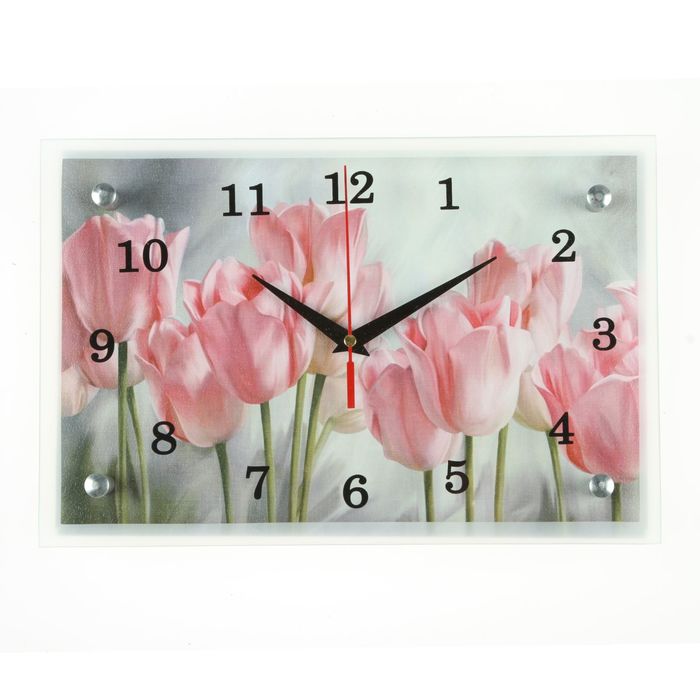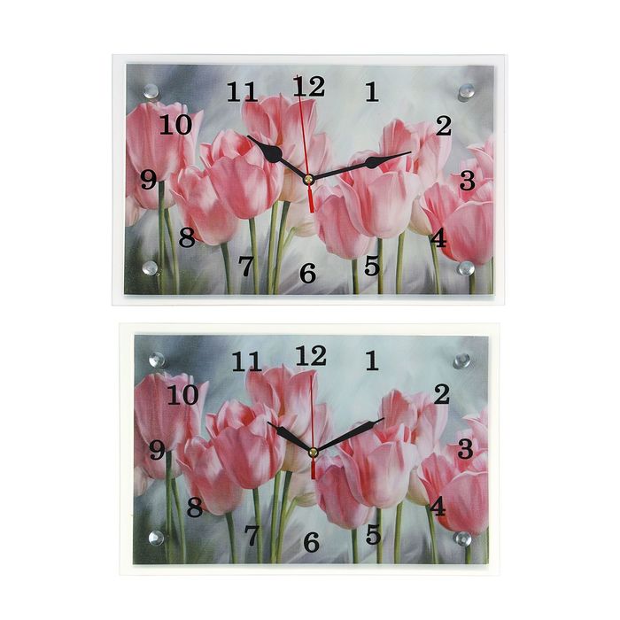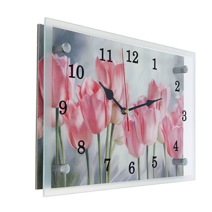 Часы настенные прямоугольные "Розовые тюльпаны", 20х30 см микс
