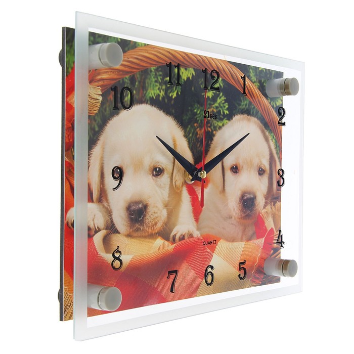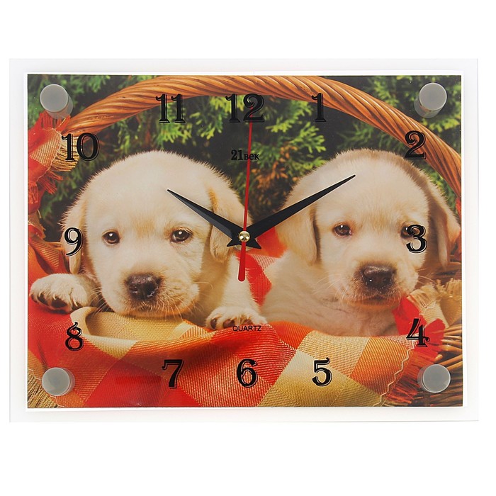 Часы настенные прямоугольные "Щенята", 20х26 см микс