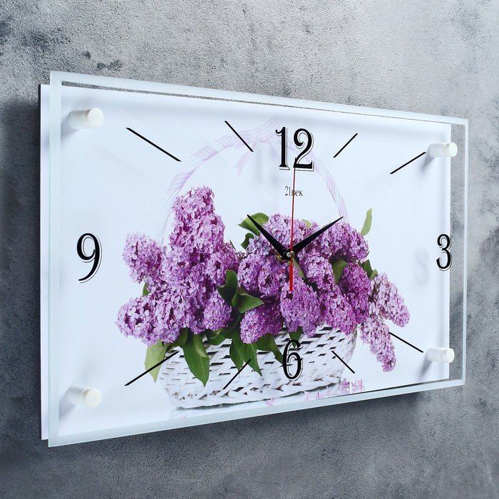 Часы настенные прямоугольные "Сирень в корзине", 52х26 см микс