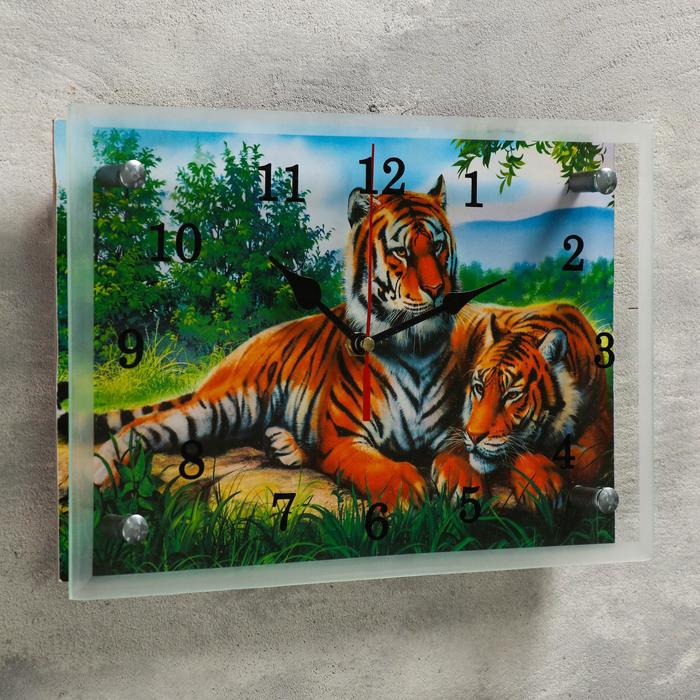 Часы настенные прямоугольные "Тигры", 20х30 см микс