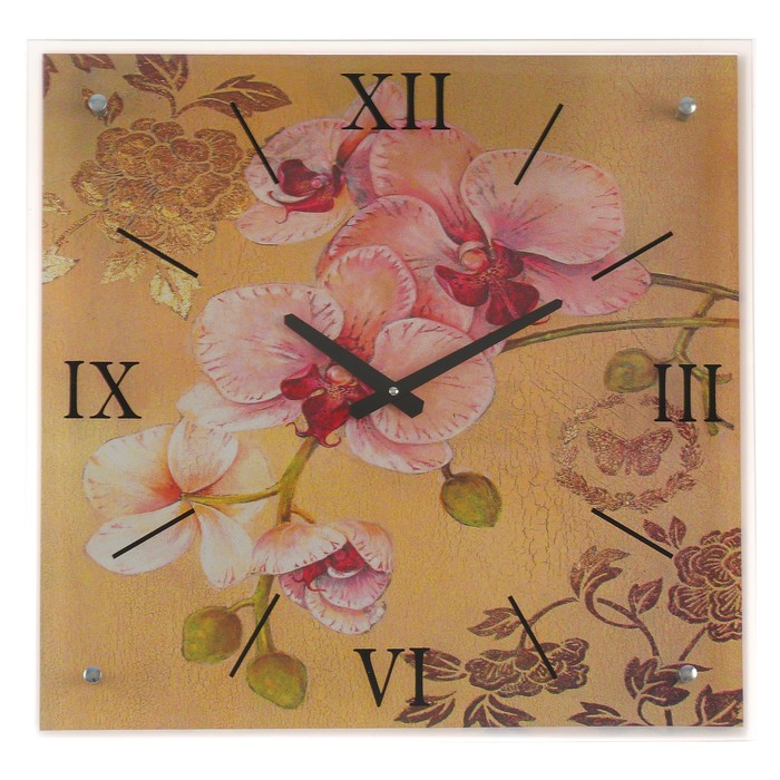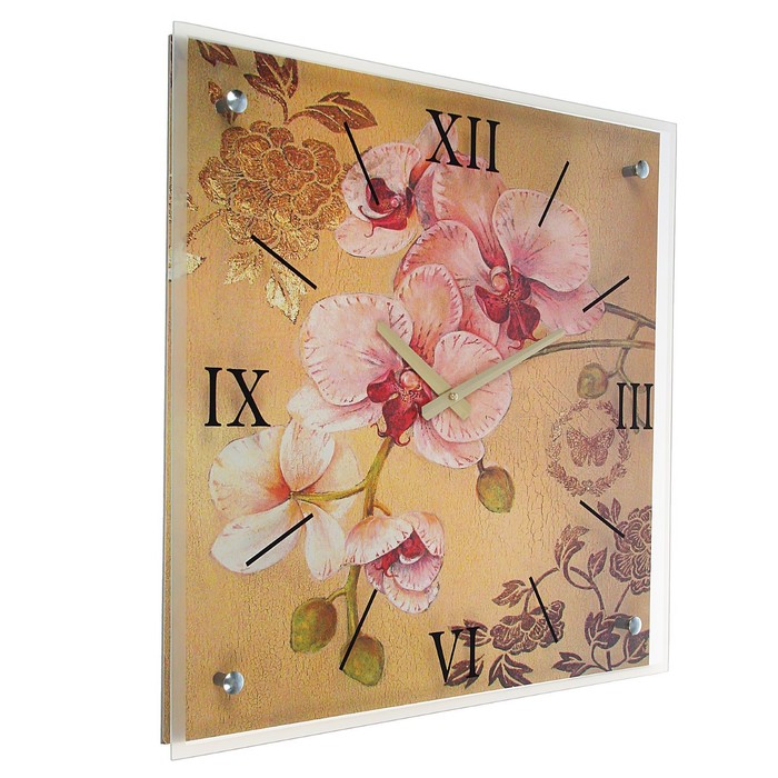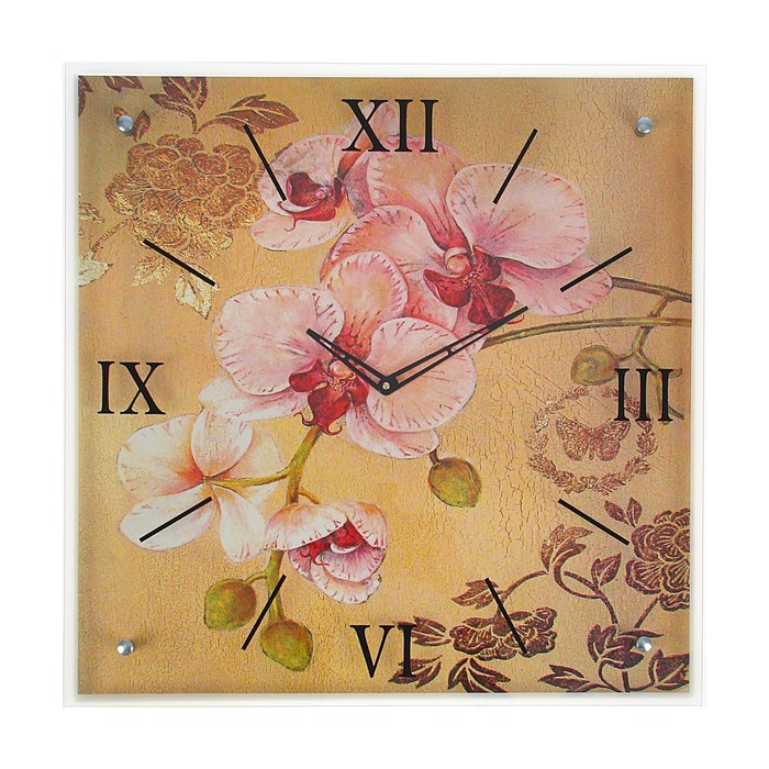 Часы настенные прямоугольные "Ветка орхидеи", 50х50 см микс