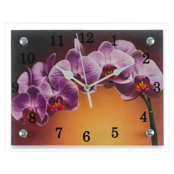 Часы настенные прямоугольные "Ветка сиреневой орхидеи", 20х25 см микс