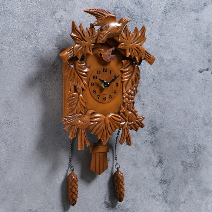 Часы настенные с кукушкой "Лесные жители", МИКС работают на батарейке, гири – бутафорские. Громкость кукушки регулируется.