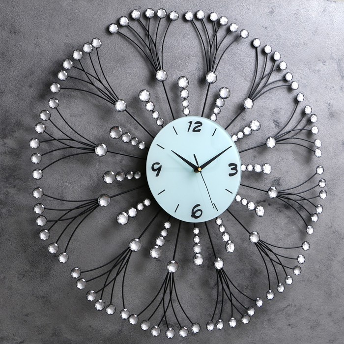 Часы настенные, серия Ажур «Кисти рябины», стразы, цифры 3, 6, 9, 12, d=70 см