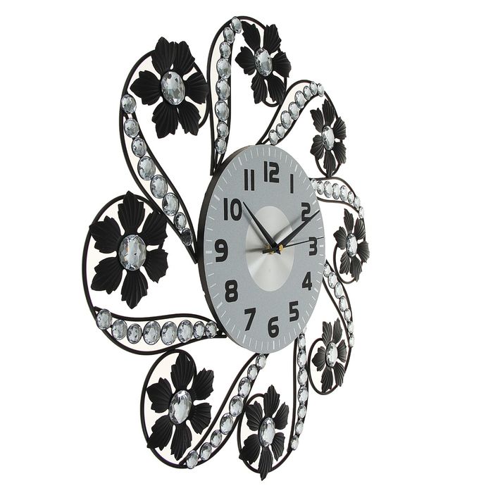Часы настенные, серия Ажур, круглые, обрамление-завитки с цветами, d=48 см