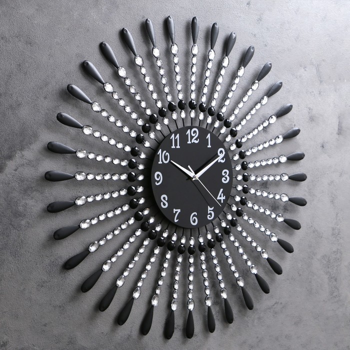 Часы настенные, серия Ажур «Лучики-кисточки», стразы, чёрные, d=70 см