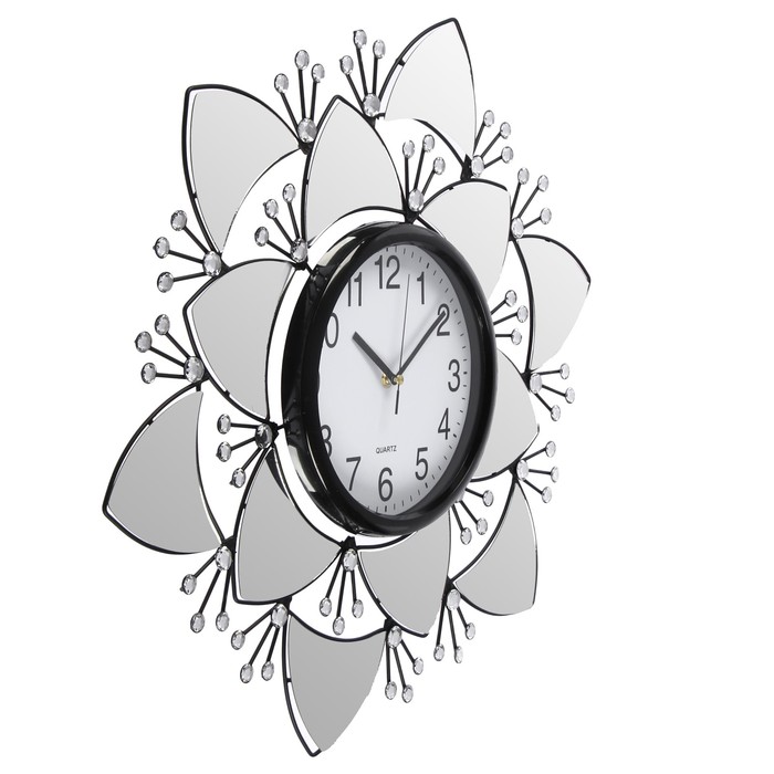Часы настенные, серия Ажур «Объёмный цветок со стразами», зеркальные лепестки, d=60 см