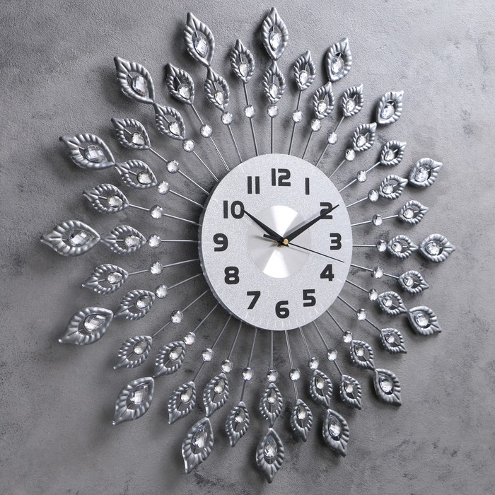 Часы настенные, серия Ажур, «Павлиньи перья», лучики в два ряда, серебристые, d=60 см