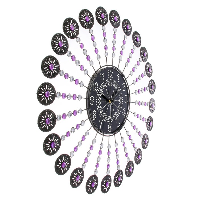 Часы настенные, серия Ажур «Стразы», циф-т чёрный, фиолетовые кристаллы, d=59 см