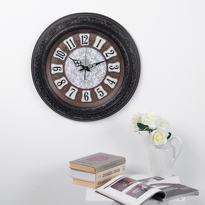 Часы настенные, серия Цифры, круглые, цифры в рамке, рама багет, чёрные, d=50 см