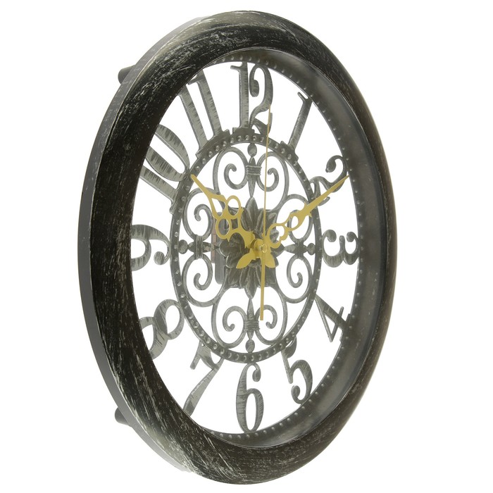 Часы настенные, серия Цифры «Винтаж», большие цифры по кайме, цвет потёртое серебро, d=36 см
