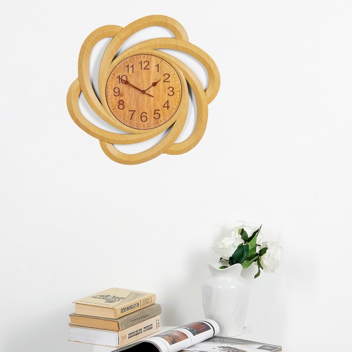 Часы настенные, серия Лес, светлые, с узором завехрения 40*40см