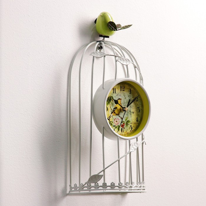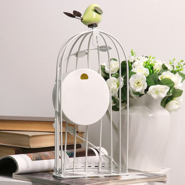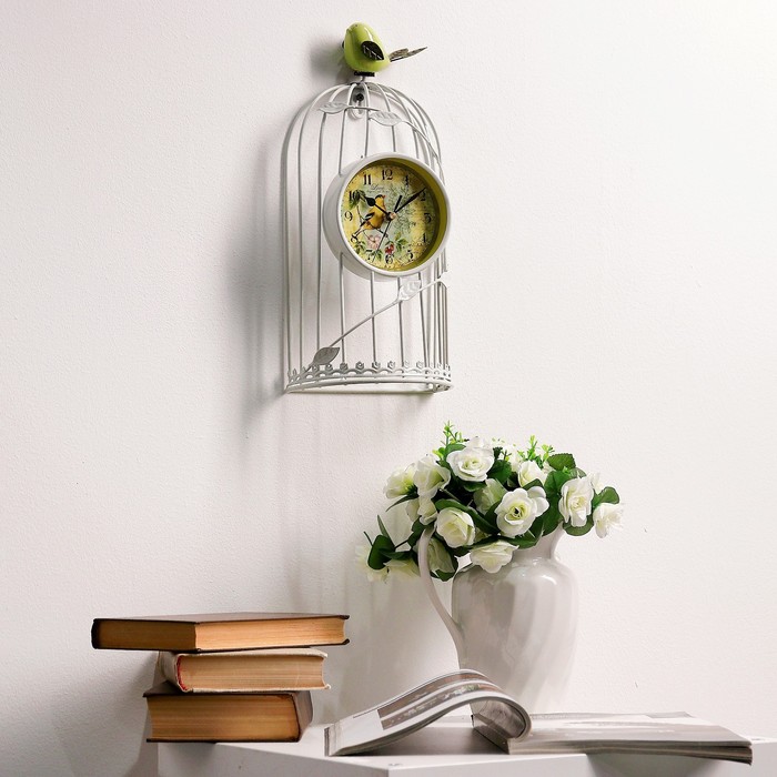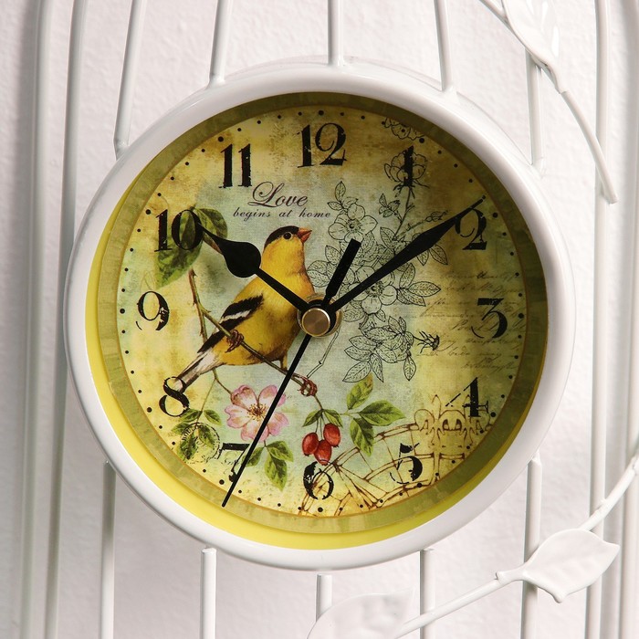 Часы настенные. Серия Лофт «Птичка в клетке», d=11.5 см, 1АА, белые, 18х18х35 см
