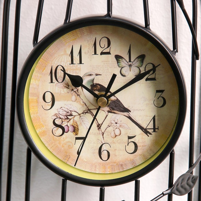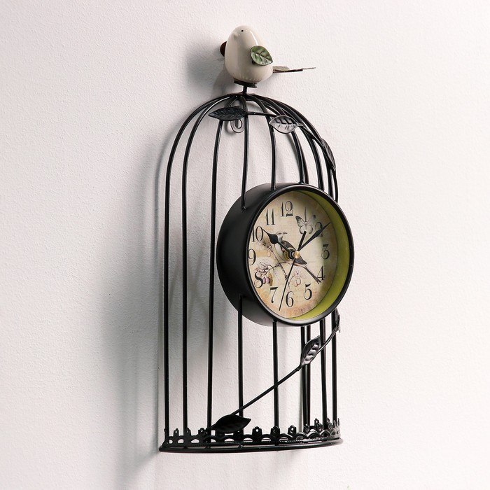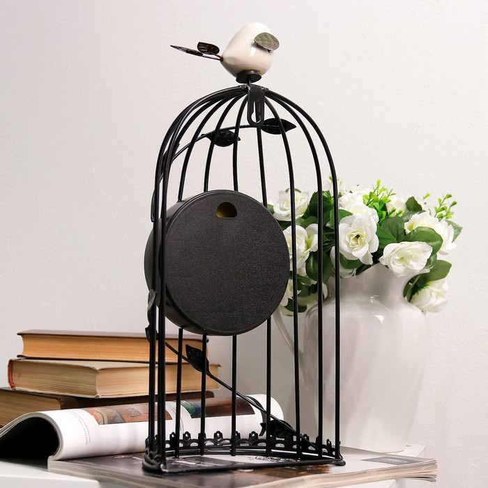 Часы настенные. Серия Лофт «Птичка в клетке», d=11.5 см, 1АА, чёрные, 18х18х35 см