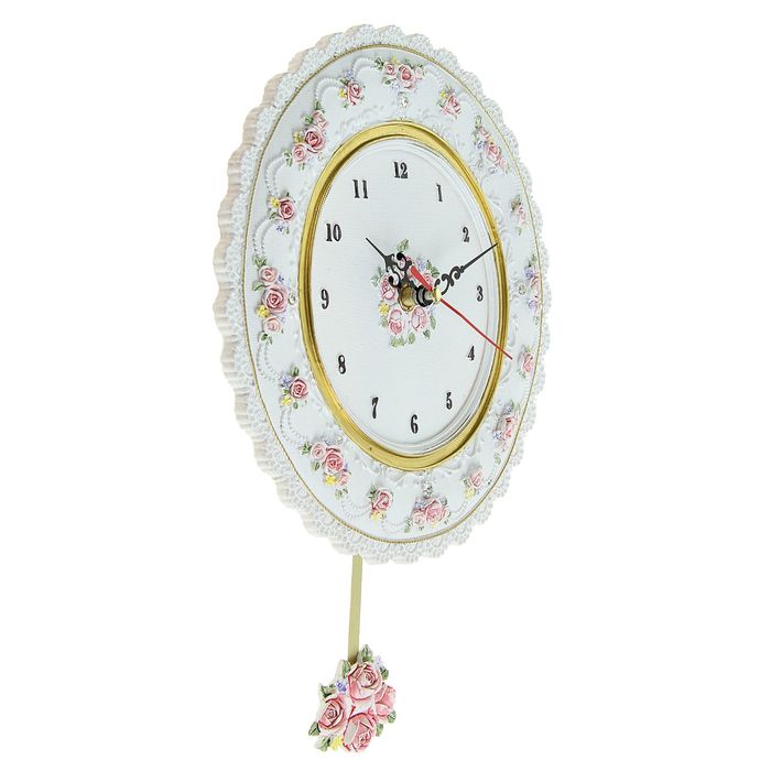 Часы настенные, серия Маятник «Розы», круглые, рама с розами маленькими, белые, d=22 см