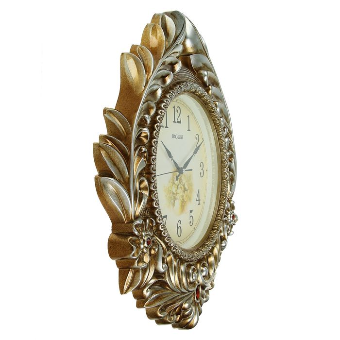 Часы настенные, серия Витория «Лавры», хромированные с позолотой, 50х58 см