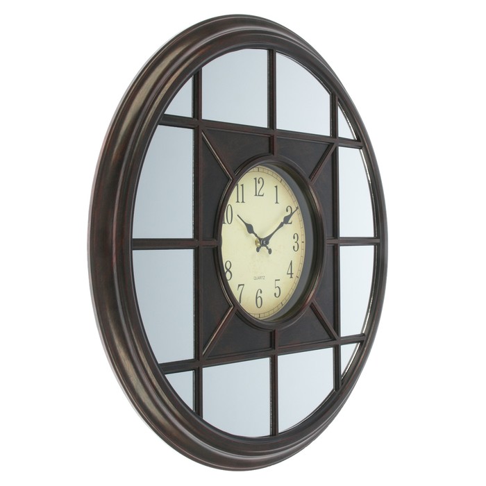 Часы настенные, серия Зеркала, круглые, внутри квадрат, циф-т под старину, чёрные, d=50 см