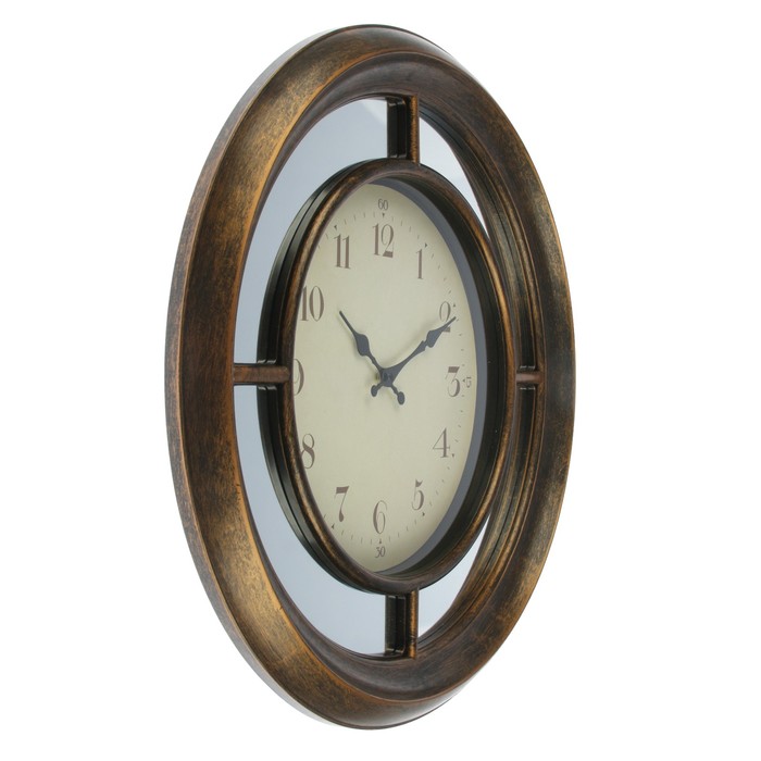 Часы настенные, серия Зеркала, круглые, зеркало по ободу, циф-т выцвел, бронзовые, d=56 см