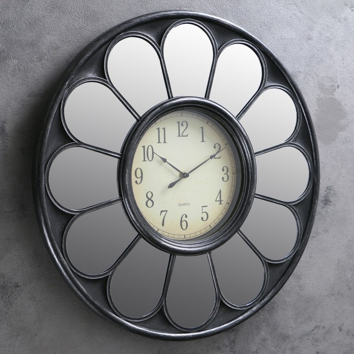 Часы настенные, серия Зеркала «Ромашка», круглые, циф-т под старину, хромированные, d=50 см