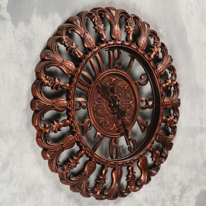 Часы настенные, серия Жанна, рама «цветы», циферблат прозрачный, медные, d=50 см