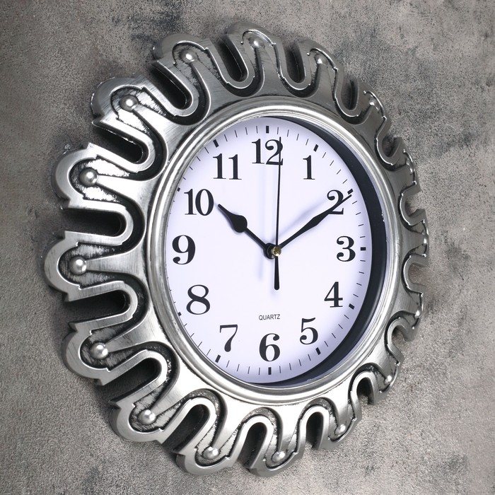 Часы настенные, серия Жанна, рама "футуристика", серебрянные, d=30 см