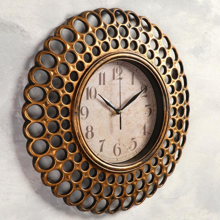 Часы настенные серия Жанна, рама кружки бронза, ретро циферблат d=46см