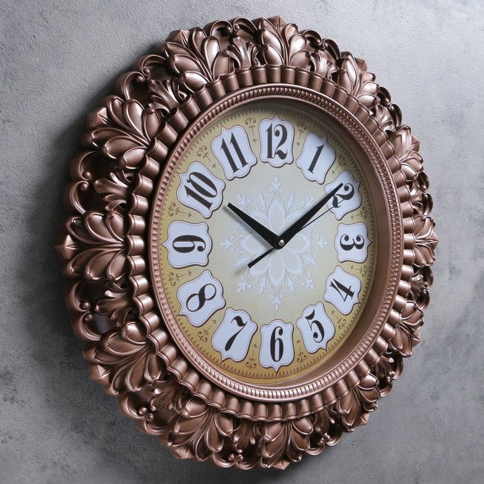 Часы настенные, серия Жанна, рама «листья», ретро циферблат, бронзовые, d=56 см