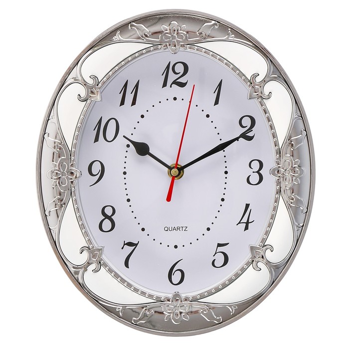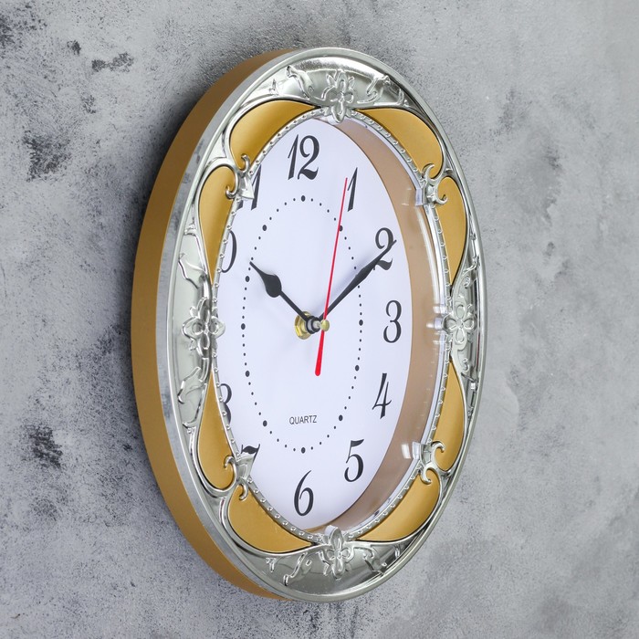 Часы настенные серия Золото, овал, рама с узором хром МИКС 22*3*26
