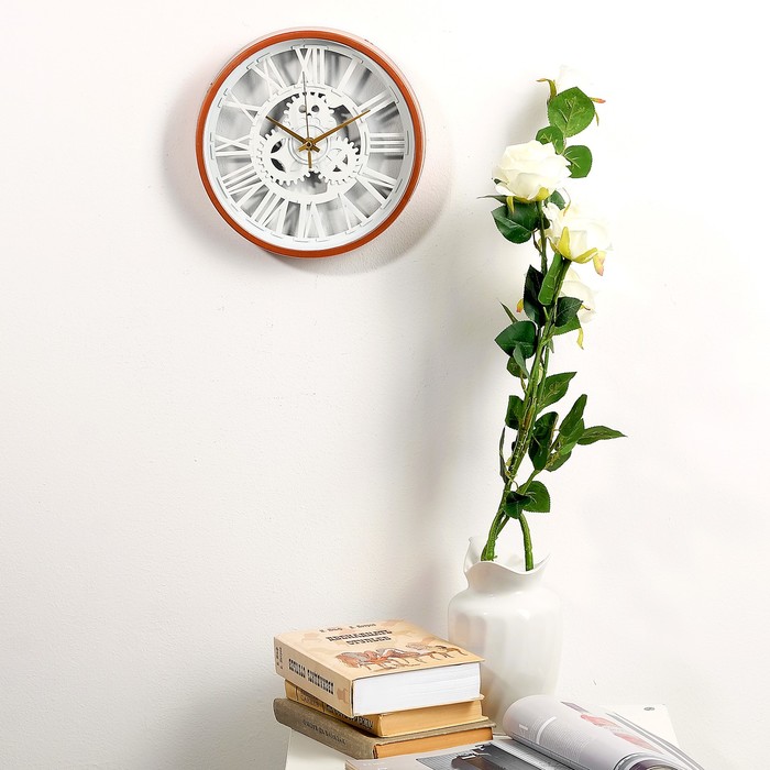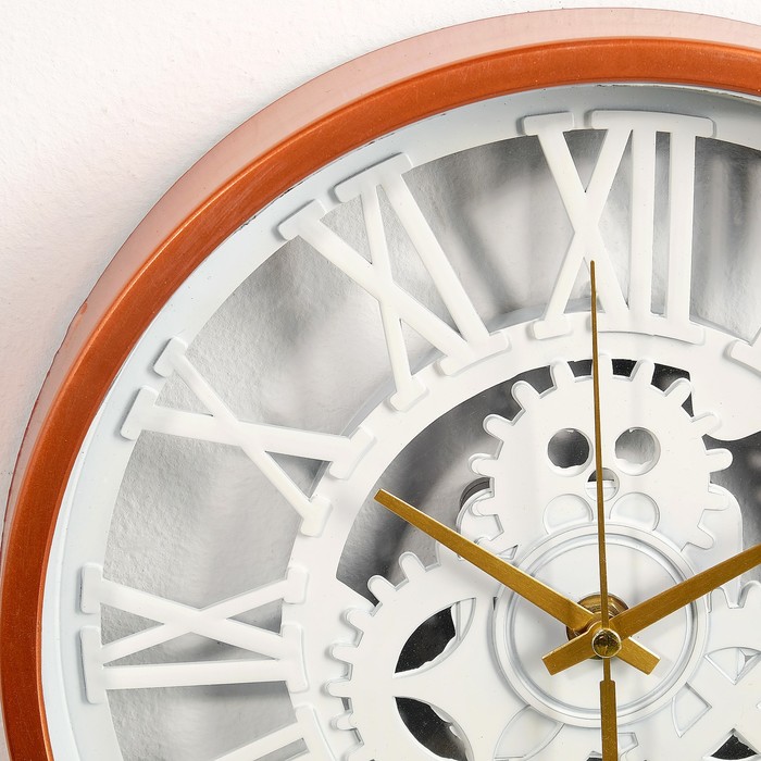 Часы настенные «Шестеренки», пластик белый с бронзовым кантом d=25 см