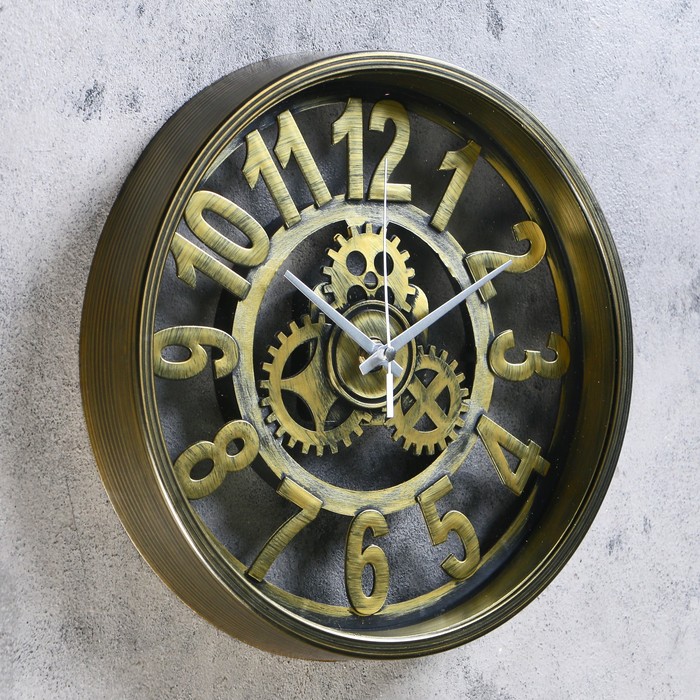 Часы настенные «Шестеренки», пластик под стринную бронзу d=25 см
